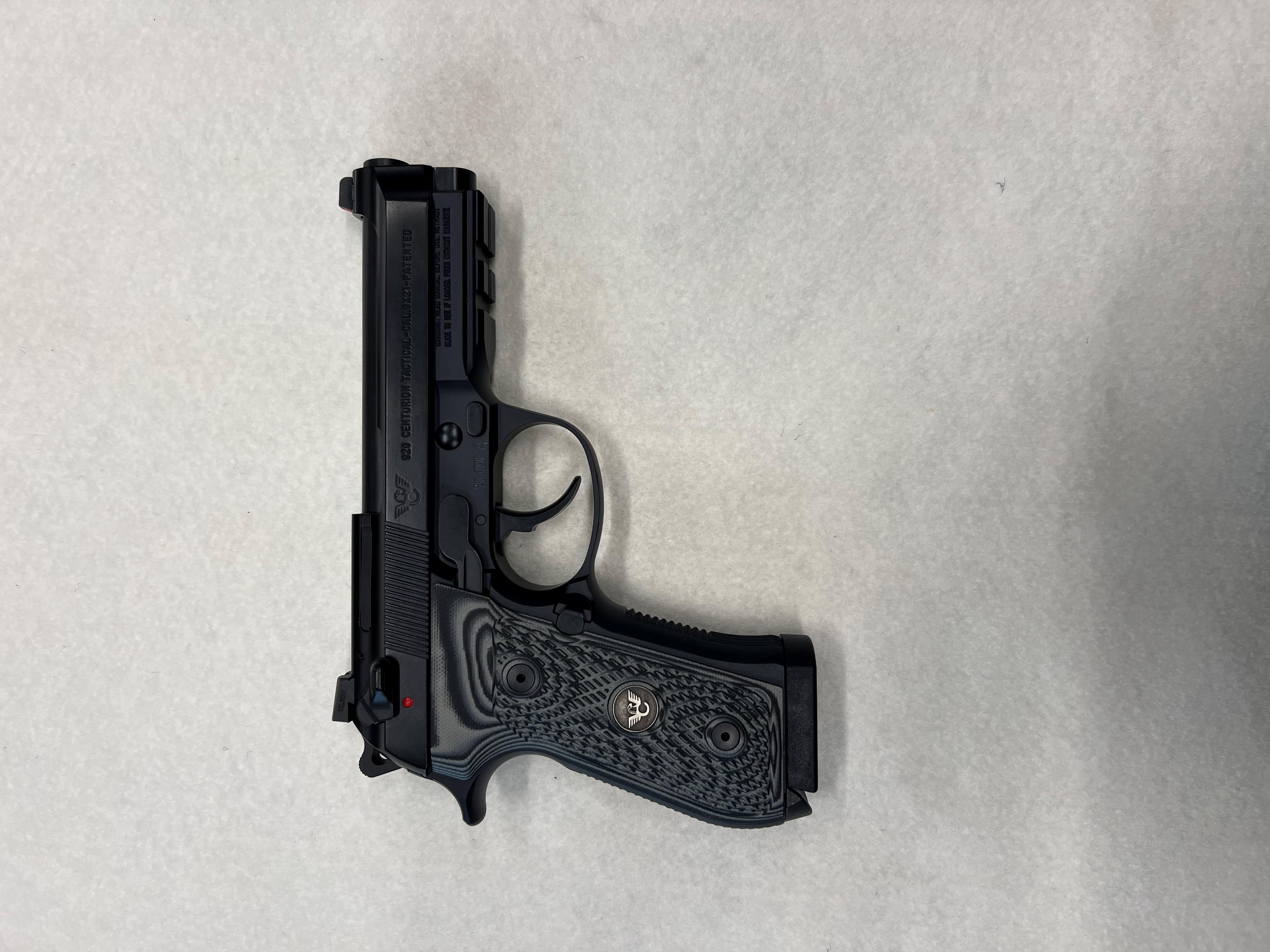 The 92G Centurion Tactical is constructed from custom all-steel parts by Beretta and Wilson Combat. It is a limited-production pistol and includes ambidextrous G-type (decocking-only) steel safeties, Centurion-length slide, modified M9A1-style checkered frame with additional accessory rail, and rounded trigger guard.